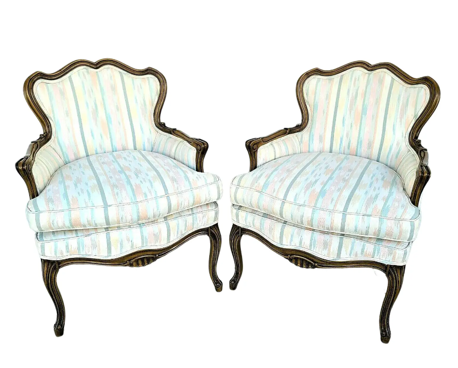 Pair of Vintage French Provincial Accent Bergere Chairs
